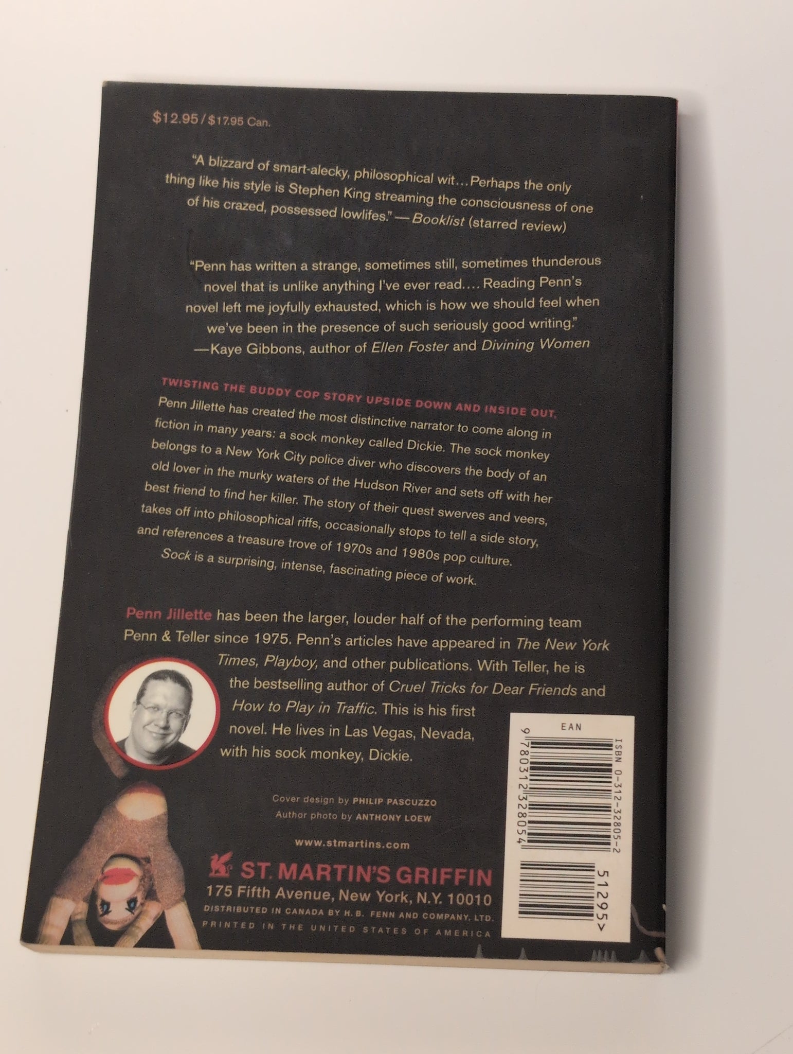 Written by the louder half of the famous magic duo Penn & Teller, this unique mystery is narrated by a witty and philosophical sock monkey named Dickie. The story follows a New York City police diver as she investigates the death of an old friend, filled with Jillette’s signature humor and pop-culture riffs. This book is sold by Underworld Amusements as "used" and should be considered in Good condition or better unless otherwise noted. Any condition issues below Good will be explicitly described. All items are sold as-is, and photographs show the exact copy being purchased. Brief descriptions are provided where relevant; for additional details about a title or edition, please consult independent online references.