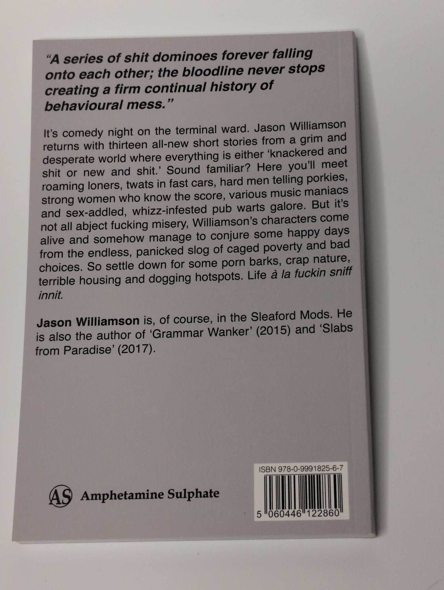 Published by Amphetamine Sulphate, this gritty and visceral work captures the raw energy and sharp social commentary characteristic of the Sleaford Mods frontman. This item is in "as new" condition, appearing unread and well-preserved. All items are sold as-is, and photographs show the exact copy being purchased. Brief descriptions are provided where relevant; for additional details about a title or edition, please consult independent online references.